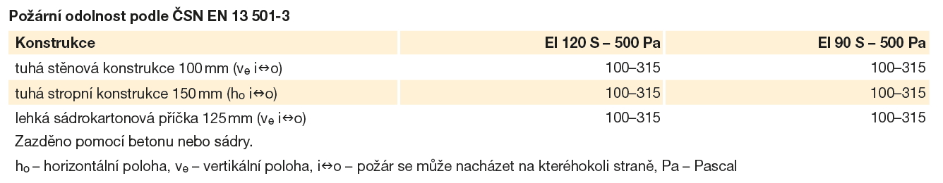 ![]() | Použití Klapky jsou vhodné pro instalaci do všech běžných stavebních konstrukcí, jako jsou tuhé stěnové konstrukce, lehké příčky nebo tuhé stropní konstrukce. Klapku lze instalovat v požárně dělicí konstrukci s osou listu vertikálně i horizontálně. Požární klapky lze použít pouze pro vzdušinu bez mechanických a chemických příměsí. Maximální rychlost proudění 10 m/s. | |