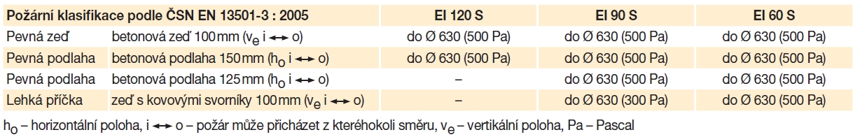 ![]() | Popis Kruhové požární klapky CR2 slouží jako uzávěr vzduchotechnického potrubí v případě požáru. Aktivací klapky je zabráněno po uvedenou dobu šíření splodin hoření do vedlejšího požárního úseku. Plášť klapky je zhotoven z ocelového plechu chráněného antikorozní úpravou. Třída požární odolnosti klapky je EI60, EI90 nebo EI120 podle přiložené tabulky. Zkoušeno podle normy ČSN EN 1366-2 při 500 Pa. | |
