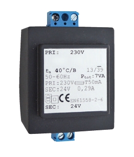 • napájecí transformátory 24 VAC, s dvojitou izolací