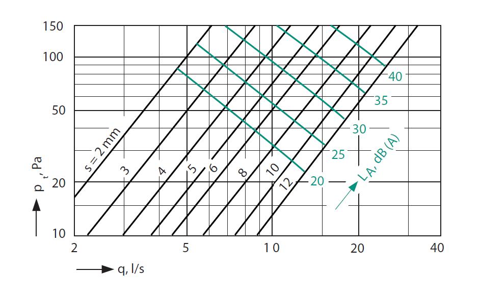 ![]() | Informace Ventil je vyroben z ocelového plechu opatřeného bílou vypalovací barvou RAL 9003. Talířový ventil má těsnění z pěnové pásky, která spolu s montážním kroužkem zajišťuje dokonalé utěsnění. Nastavení ventilu se provádí zvětšováním respektive zmenšováním výtokové štěrbiny ventilu, nastavení pomocí šroubováku. Montážní rámečky KGEZ-01, KGEZ-05 a KGEZ-43 jsou vyrobeny z pozinkovaného plechu. • pro přívod vzduchu vhodný pro použití v kancelářích, budovách ap. • upevnění na stěnu • dobré nastavovací parametry • rychlá a snadná instalace • snadné měření průtoku vzduchu Instalace Montážní kroužek KGEZ se připevňují k potrubí pomocí šroubů nebo nýtů. U provedení KGEZ-43 je možno zabudovat do svislých stavebních konstukcí. Měření a regulace Regulace průtoku se provádí zvětšováním respektive zmenšováním výtokové štěrbiny ventilu, kterým se změní nastavovací rozměr s (mm). Měření průtoku vzduchu se provádí měřením diference tlaků samostatnou měřicí trubicí. Bližší informace viz diagramy průtoku. | |