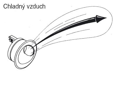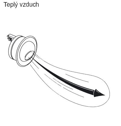 natočení dýzy při proudění teplého vzduchu | natočení dýzy při proudění chladného vzduchu | instalovaná dýza DF-49-TR |