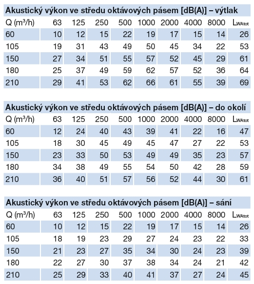 * hodnota akustického tlaku do okolí, potrubí připojené, vzdálenost 1,5 m