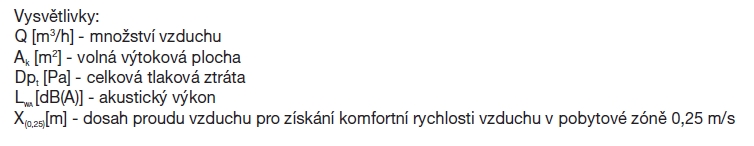 | Ak [m2] | Q min [m3/h] | Q max [m3/h] | Lwa min [dB(A)] | Lwa max [dB(A)] | X0.25 min [m] | X0.25 max [m] | Dpt min [Pa] | Dpt max [Pa] |