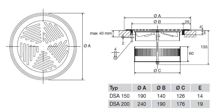 DSA-150 podlahová kruhová vyúsťPříslušenství, distribuční elementy