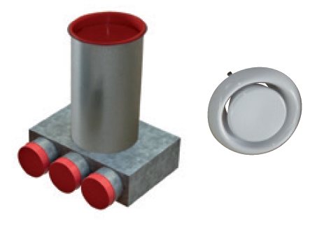 ![]() | Informace • podlahový box průchozí (PK podlahové koleno) • pro talířový ventil DN 125, 150 • záslepky a talířové ventily nejsou součástí dodávky | |