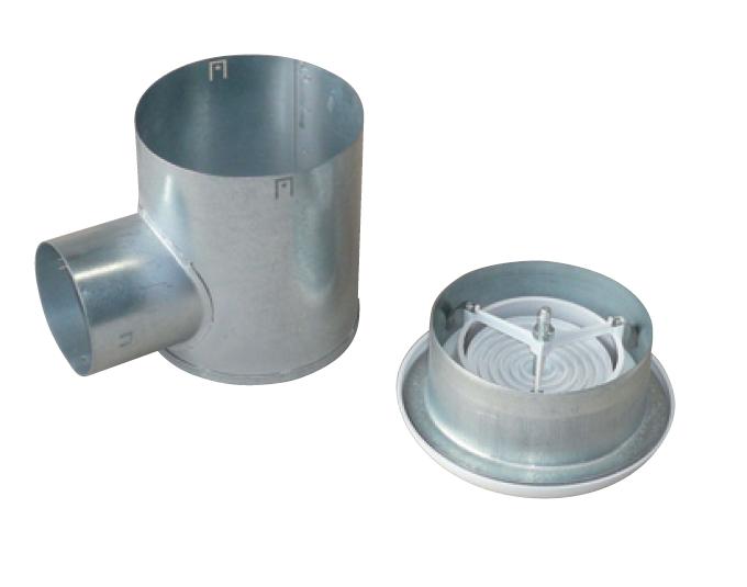 • stěnový (stropní) box kovový pro talířový ventil (plastový nebo kovový, není součástí dodávky)