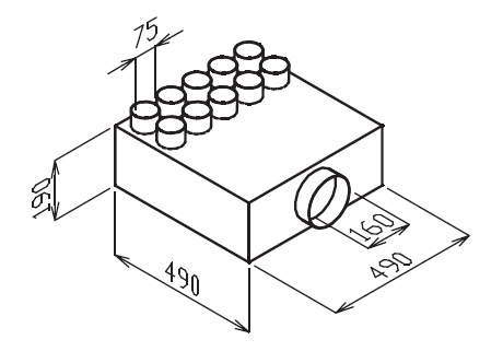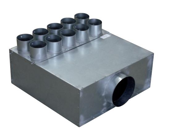 • univerzální rozváděcí box umožňuje namontovat řadu hrdel DN 75 na stěnu nebo na čelo