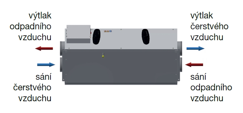 ![]() | Filtr V jednotce jsou osazeny dva deskové filtry s tlakovými spínači: F7 (ISO ePM2,5 70%) na sání čerstvého vzduchu a M5 (ISO ePM10 50%) na sání odpadního vzduchu. | |