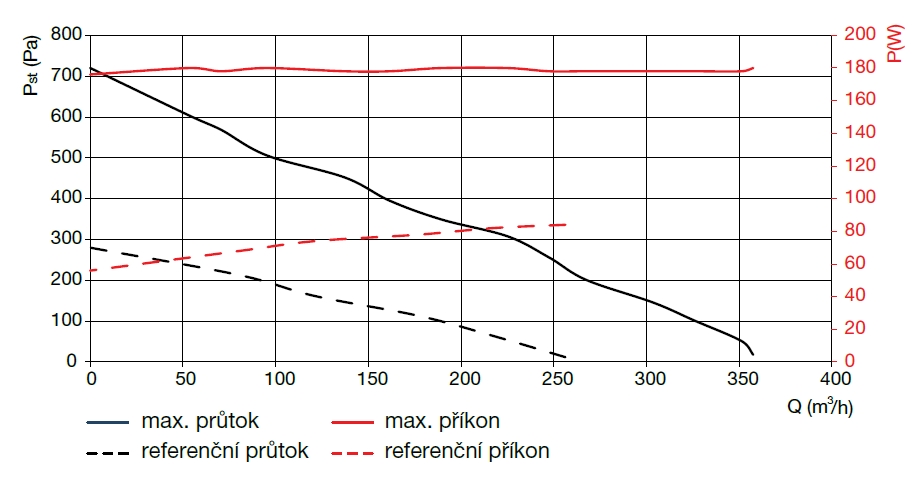 | max. průtok [m3/h] | příkon ventilátorů [W] | napětí [V, Hz] | max. proud ventilátorů [A] | max. proud jednotky [A] | okolní teplota [˚C] | hmotnost [kg] |