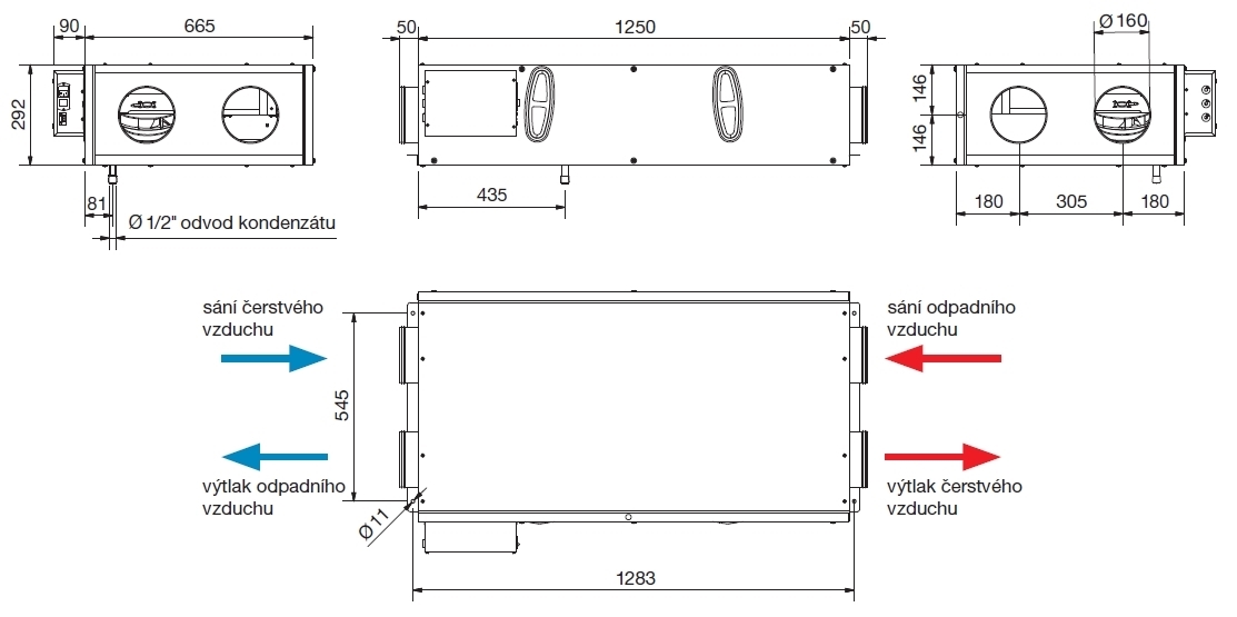 návrh jednotky, konzultace | minimální volný prostor okolo jednotky | funkce jednotlivých hrdel | CTR08-PH regulace s ručním ovládáním | |||