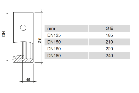 • vnitřní průměr potrubí DN125, DN150 nebo DN160