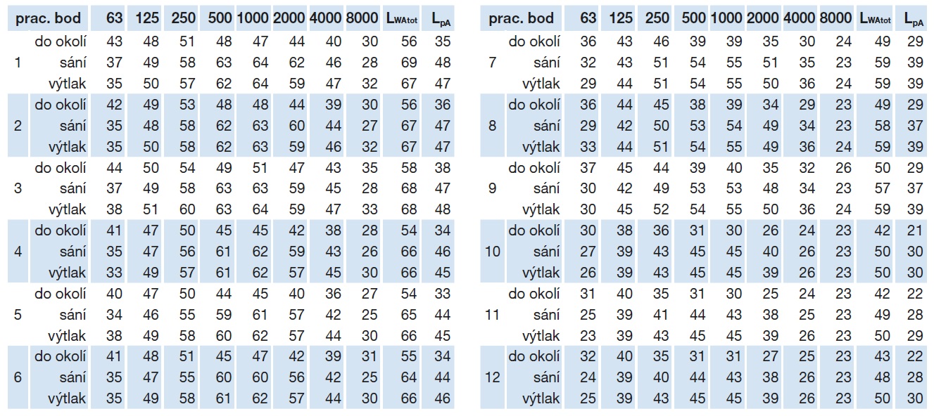 * akustický tlak ve vzdálenosti 3 m ve volném poli, do okolí / sání / výtlak