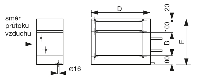 ![]() | Informace • je určen pro čtyřhranné potrubí ve spojení s jednotkami DIRECT AIR • plášť chladiče je z galvanizovaného plechu • lamely jsou hliníkové na měděných trubičkách • připojení je pájením • chladič obsahuje eliminátor kapek • použitelné do provozního tlaku 30 bar (3 MPa) Instalace a provoz • rychlost vzduchu v potrubí nesmí překročit 4 m/s, jinak je nutno po konzultaci s technickým oddělením EDV doplnit další eliminátor kapek • přímé chladiče mohou být instalovány pouze ve vnitřním prostředí (v místě, kde je teplota trvale nad 0 ˚C • montáž výlučně v horizontální poloze • před chladič musí být instalován filtr vzduchu (ochrana před znečištěním) • chladič doporučujeme zařadit za ohřívač • při montáži je nutno pamatovat na vypouštění a plnění soustavy a zajištění přístupu pro servis • v rámci projekce je nutno chladič navrhnout s ohledem na množství vyvíjeného kondenzátu • odvod kondenzátu s pachovým sifonem je třeba kontrolovat s ohledem na možnost vysychání a zajistit dostatečnou výšku vodního sloupce pro překonání tlakové ztráty sifonu • pro zjištění minimálního bezpečného rozdílu hladin v sifonu lze orientačně postupovat tak, že se vezme celkový tlak ventilátoru Pt v mm vodního sloupce, tato hodnota se zvýší o cca 50 % (takto získaná hodnota představuje praktickou doporučenou hodnotu výšky vodního sloupce v sifonu, aby nemohlo dojít k překonání pachového uzávěru vyfouknutím přetlakem nebo vysáním podtlakem ventilátoru) • procházející vzduch nesmí obsahovat pevné, vláknité, lepivé a agresivní příměsi. Také musí být bez chemických látek, které způsobují korozi použitých materiálů tj. narušují hliník, měď a zinek • pro snížení tlakových ztrát (a tím snížení provozních nákladů) doporučujeme používat chladiče s obtokem vzduchu kolem výparníku (typ IKFxxBP) • propojení výparníku se zdrojem je pomocí izolovaného měděného potrubí. Chladící výkon se reguluje pomocí spínání kondenzační jednotky (provoz START-STOP) • na základě konzultace s technickým oddělením je možno nabídnout vhodný zdroj chladu Upozornění Chladič musí být nainstalován do potrubní trasy s prouděním vzduchu ve směru šipky na skříni chladiče, pokud je chladič namontován obráceně, kondenzát není sváděn do jímače a vytéká z chladiče ven. Pro spolehlivou funkci chladiče je nutno zajistit ochranu proti namrzání, případně regulaci výkonu (odmrazovací cyklus). V objednávce je nutno uvést požadavek na pravé nebo levé provedení. Provedení se rozumí podle směru vývodů při pohledu zpředu (tj. lamely výparníků jsou blíže k vám). Ochrana proti namrzání Při běžném použití musíme zajistit ochranu výparníku proti namrzání. V zimě je obtok otevřen, čímž je ochlazování vstupním vzduchem omezeno. Ochrana proti namrzání je zajištěna čidlem tak, aby při poklesu teploty za chladičem pod +5 ˚C došlo k odpojení zdroje chladu (kondenzační jednotky). K opětovnému připojení dojde, až vzroste teplota za chladičem nad +5 ˚C a současně bude požadavek na chlazení z řídicího systému. Lze použít termostaty s kontaktním výstupem např. čidlo F2000, které je určeno pro snímání teploty vzduchu v potrubí za výparníkem. Čidlo má nastavitelnou teplotu v rozsahu -30 …+30 ˚C, krytí IP44, kontakt Umax = 250 V, Imax = 16 A. Montáž a údržba přímých chladičů – výparníků Přímý chladič musí být vzdálen od kondenzační jednotky méně, než je maximální povolená vzdálenost. Musí být dodrženy limity pro maximální délku přívodního vedení a maximální převýšení mezi zdrojem a výparníkem. Instalace musí být provedena na základě odborného projektu kvalifikovaného projektanta, který odpovídá za správný výběr výparníku a příslušenství. Instalaci a uvedení do provozu smí provádět pouze odborná montážní firma s oprávněním dle obecně platných předpisů. Před montáží je nutno chladící systém pečlivě zkontrolovat. Hlavně je třeba zkontrolovat, zda nejsou některé díly poškozeny, zda je v pořádku potrubí, lamely a sběrače výparníku. Propojovací měděné potrubí musí být po celé délce izolováno a to každá trubka zvlášť. | |