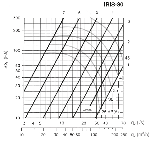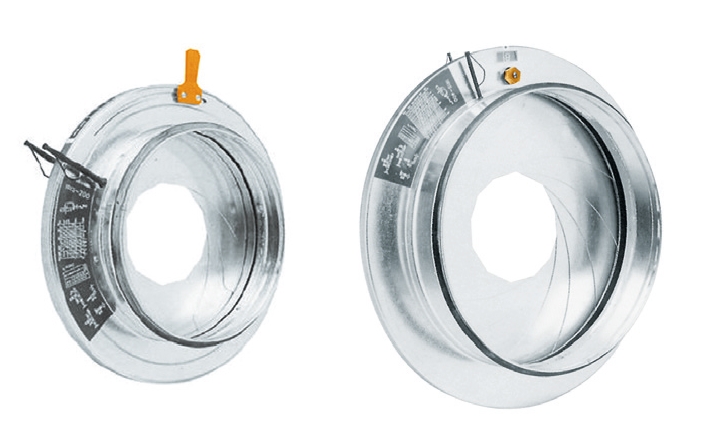 ![]() | Informace Regulační a měřící clona IRIS je ideální zařízení pro regulaci a měření průtoku vzduchu v kruhovém potrubí. • nízká hladina hluku • možnost plného otevření při čištění potrubí • těsná konstrukce Konstrukce Clona IRIS je vyrobena z pozinkovaného ocelového plechu, dodává se s ovládacím mechanismem, měřící stupnicí a odběry pro připojení manometru. Instalace Clona IRIS se k potrubí připojuje pomocí nýtů nebo samořezných šroubů. Připojovací hrdla jsou opatřena jednobřitým těsněním. Bližší informaci ohledně doporučovaných bezpečných vzdáleností viz následující strana. Regulace a měření Clona IRIS může být snadno použita pro měření průtoku vzduchu. Přesný ovládací mechanismus zaručuje definované rozměry otevření odpovídající měřící stupnici. Každá clona je opatřena odběry pro připojení manometru pro měření tlakové diference (pm), která se dá přímo použít k odečtení rychlosti proudění z pracovních charakteristik uvedených na cloně nebo v tištěném podkladu dodávaném s clonou. Diagramy uvedené zde v katalogu jsou určeny pro volbu vhodné velikosti clony, ne pro stanovení průtoku. Průtok vzduchu se dá snadno regulovat pomocí ovládací rukojeti (u velikostí 80–315) nebo pootočením regulační matice (u velikostí 400, 500). | |