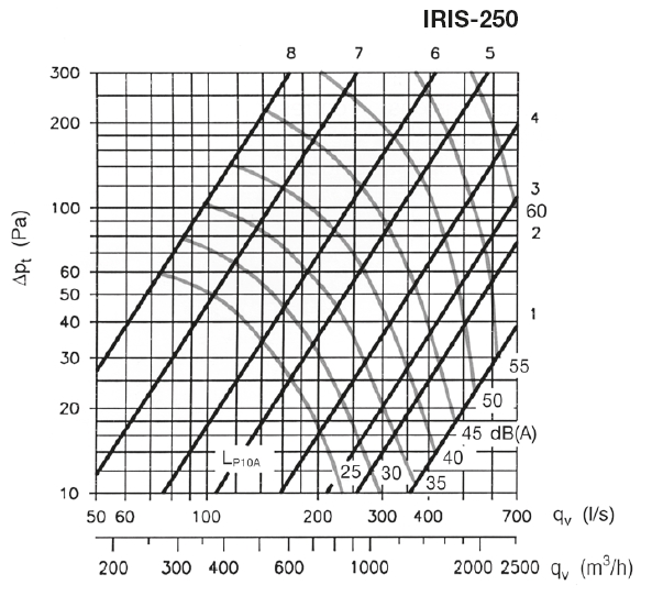 ![]() | Informace Regulační a měřící clona IRIS je ideální zařízení pro regulaci a měření průtoku vzduchu v kruhovém potrubí. • nízká hladina hluku • možnost plného otevření při čištění potrubí • těsná konstrukce Konstrukce Clona IRIS je vyrobena z pozinkovaného ocelového plechu, dodává se s ovládacím mechanismem, měřící stupnicí a odběry pro připojení manometru. Instalace Clona IRIS se k potrubí připojuje pomocí nýtů nebo samořezných šroubů. Připojovací hrdla jsou opatřena jednobřitým těsněním. Bližší informaci ohledně doporučovaných bezpečných vzdáleností viz následující strana. Regulace a měření Clona IRIS může být snadno použita pro měření průtoku vzduchu. Přesný ovládací mechanismus zaručuje definované rozměry otevření odpovídající měřící stupnici. Každá clona je opatřena odběry pro připojení manometru pro měření tlakové diference (pm), která se dá přímo použít k odečtení rychlosti proudění z pracovních charakteristik uvedených na cloně nebo v tištěném podkladu dodávaném s clonou. Diagramy uvedené zde v katalogu jsou určeny pro volbu vhodné velikosti clony, ne pro stanovení průtoku. Průtok vzduchu se dá snadno regulovat pomocí ovládací rukojeti (u velikostí 80–315) nebo pootočením regulační matice (u velikostí 400, 500). | |