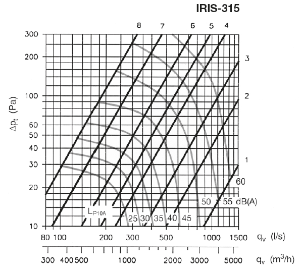 ![]() | Informace Regulační a měřící clona IRIS je ideální zařízení pro regulaci a měření průtoku vzduchu v kruhovém potrubí. • nízká hladina hluku • možnost plného otevření při čištění potrubí • těsná konstrukce Konstrukce Clona IRIS je vyrobena z pozinkovaného ocelového plechu, dodává se s ovládacím mechanismem, měřící stupnicí a odběry pro připojení manometru. Instalace Clona IRIS se k potrubí připojuje pomocí nýtů nebo samořezných šroubů. Připojovací hrdla jsou opatřena jednobřitým těsněním. Bližší informaci ohledně doporučovaných bezpečných vzdáleností viz následující strana. Regulace a měření Clona IRIS může být snadno použita pro měření průtoku vzduchu. Přesný ovládací mechanismus zaručuje definované rozměry otevření odpovídající měřící stupnici. Každá clona je opatřena odběry pro připojení manometru pro měření tlakové diference (pm), která se dá přímo použít k odečtení rychlosti proudění z pracovních charakteristik uvedených na cloně nebo v tištěném podkladu dodávaném s clonou. Diagramy uvedené zde v katalogu jsou určeny pro volbu vhodné velikosti clony, ne pro stanovení průtoku. Průtok vzduchu se dá snadno regulovat pomocí ovládací rukojeti (u velikostí 80–315) nebo pootočením regulační matice (u velikostí 400, 500). | |
