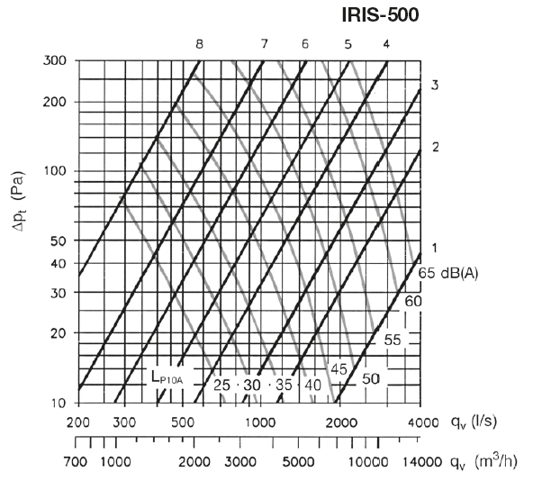 ![]() | Informace Regulační a měřící clona IRIS je ideální zařízení pro regulaci a měření průtoku vzduchu v kruhovém potrubí. • nízká hladina hluku • možnost plného otevření při čištění potrubí • těsná konstrukce Konstrukce Clona IRIS je vyrobena z pozinkovaného ocelového plechu, dodává se s ovládacím mechanismem, měřící stupnicí a odběry pro připojení manometru. Instalace Clona IRIS se k potrubí připojuje pomocí nýtů nebo samořezných šroubů. Připojovací hrdla jsou opatřena jednobřitým těsněním. Bližší informaci ohledně doporučovaných bezpečných vzdáleností viz následující strana. Regulace a měření Clona IRIS může být snadno použita pro měření průtoku vzduchu. Přesný ovládací mechanismus zaručuje definované rozměry otevření odpovídající měřící stupnici. Každá clona je opatřena odběry pro připojení manometru pro měření tlakové diference (pm), která se dá přímo použít k odečtení rychlosti proudění z pracovních charakteristik uvedených na cloně nebo v tištěném podkladu dodávaném s clonou. Diagramy uvedené zde v katalogu jsou určeny pro volbu vhodné velikosti clony, ne pro stanovení průtoku. Průtok vzduchu se dá snadno regulovat pomocí ovládací rukojeti (u velikostí 80–315) nebo pootočením regulační matice (u velikostí 400, 500). | |