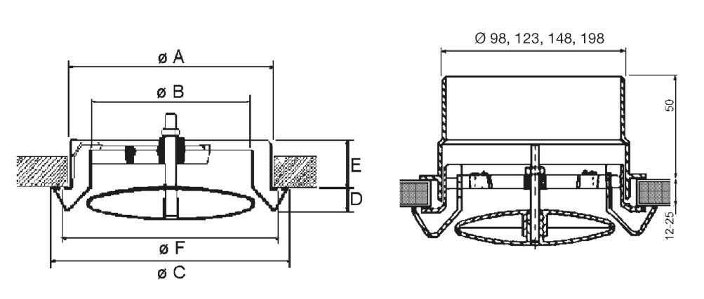 ![]() | Informace Univerzální plastové talířové ventily pro přívod a odvod vzduchu mají snadno nastavitelný středový element pro regulaci průtoku a v přívodním režimu i tvaru proudu vzduchu. Talířový ventil je opatřen těsnicí páskou pro utěsnění v montážním kroužku. Plastové ventily je možné čistit slabými roztoky neagresivních saponátů. Ventily IT jsou vyrobeny z polypropylenu, barva bílá v odstínu RAL 9010. • pro přívod a odvod vzduchu vhodný do domácností, kanceláří apod. • dobré nastavovací parametry • nízká hladina hluku • rychlá a snadná instalace • snadné měření průtoku vzduchu • příslušenství ventilu – montážní kroužek Instalace Ventily se zasunují pomocí plochých pružin do montážního kroužku, který umožňuje upevnění ventilu do stropní konstrukce nebo do zdi. Z jedné strany kroužku se zasouvá talířový ventil, z druhé strany se nasadí ohebná flexohadice a spoj se upevní pomocí ocelové nebo nylonové upínací pásky. U velikosti ventilu 100 a 125 je pro montáž do desek 12 až 25 mm možné použít zděř IT-RH. Měření a regulace Regulace průtoku vzduchu se provádí otáčením středového disku, kterým se mění otevření ventilu. Měření průtoku vzduchu se provádí standardními metodami. Bližší informace viz diagramy | |