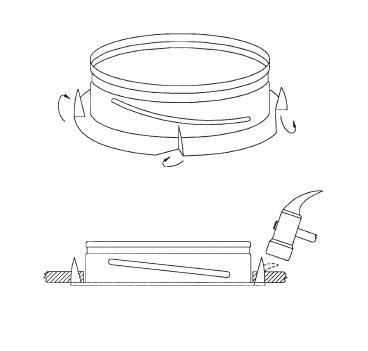 ![]() | Informace • vyrobeny z pozinkovaného ocelového plechu • KKT je opatřen jednobřitým těsněním • k potrubí se připevňuje pomocí šroubů nebo nýtů • zajištění ventilu se provede „zašroubováním“, kterým výstupky na talířovém ventilu zapadnou do závitu v montážním kroužku • Při montáži do potrubí se montážní kroužky instalují pomocí nýtů nebo šroubů, nebo pomocí šroubů na strop • Při montáži do sádrokartonu se výřezy ohnou nahoru a proříznou sádrokartonem. Zajištění se provede opětovným ohnutím výřezů nástrojem tak, aby kroužek těsně dosedl na strop. | |