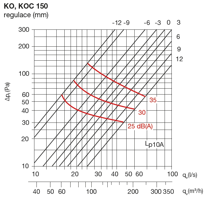 ![]() | Informace Ventil má těsnění z pěnové hmoty. Nastavení průtoku se provádí otáčením regulačního kuželu do požadované polohy a zajištěním v poloze kontramatkou. Montážní kroužek je vyroben z galvanizované oceli a je součástí dodávky talířového ventilu. • pro odvod vzduchu • vhodný do domácností, kanceláří apod. • upevnění na strop • dobré nastavovací parametry • nízká hladina hluku • rychlá a snadná instalace • snadné měření průtoku vzduchu Instalace: Montážní kroužek se připevňuje k potrubí pomocí šroubu nebo nýtu. Zajištění ventilu se provede „zašroubováním“ do závitu v montážním kroužku. Měření a regulace: Regulace průtoku vzduchu se provádí otáčením středového disku, kterým se změní nastavovací rozměr s (mm). Měření průtoku vzduchu se provádí jako měření diference tlaku za použití měřící trubice. Bližší informace viz diagramy průtoku. Vysvětlivky: Talířový ventil KO je v lakovaném provedení. Talířový ventil KOC je v lesklém chromovém provedení. Poznámka Talířové ventily KO jsou k dispozici v provedení pod označením KEL 100, KEL 125 s elektrickým ovládáním 12 V pro zónové větrání. Součástí je bezpečnostní transformátor s časovým doběhem CTE 12/708.