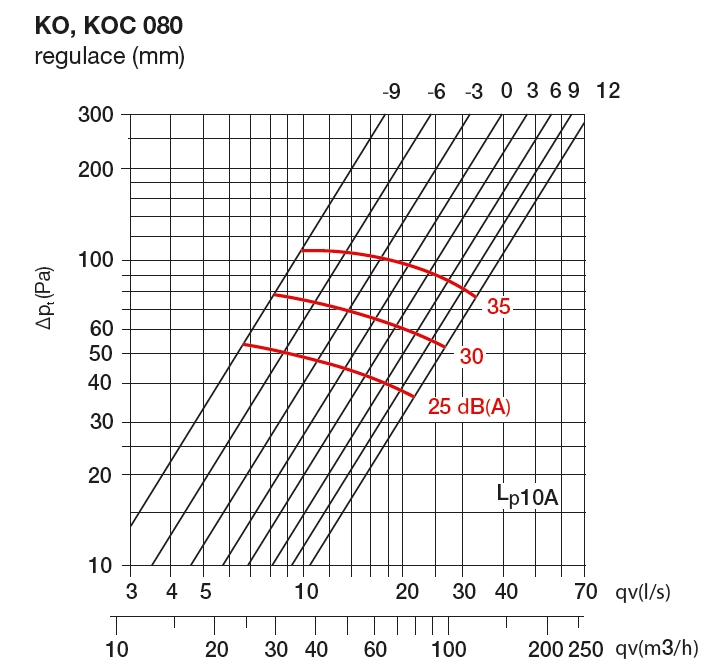 ![]() | Informace Ventil má těsnění z pěnové hmoty. Nastavení průtoku se provádí otáčením regulačního kuželu do požadované polohy a zajištěním v poloze kontramatkou. Montážní kroužek je vyroben z galvanizované oceli a je součástí dodávky talířového ventilu. • pro odvod vzduchu • vhodný do domácností, kanceláří apod. • upevnění na strop • dobré nastavovací parametry • nízká hladina hluku • rychlá a snadná instalace • snadné měření průtoku vzduchu Instalace: Montážní kroužek se připevňuje k potrubí pomocí šroubu nebo nýtu. Zajištění ventilu se provede „zašroubováním“ do závitu v montážním kroužku. Měření a regulace: Regulace průtoku vzduchu se provádí otáčením středového disku, kterým se změní nastavovací rozměr s (mm). Měření průtoku vzduchu se provádí jako měření diference tlaku za použití měřící trubice. Bližší informace viz diagramy průtoku. Vysvětlivky: Talířový ventil KO je v lakovaném provedení. Talířový ventil KOC je v lesklém chromovém provedení. Poznámka Talířové ventily KO jsou k dispozici v provedení pod označením KEL 100, KEL 125 s elektrickým ovládáním 12 V pro zónové větrání. Součástí je bezpečnostní transformátor s časovým doběhem CTE 12/708.