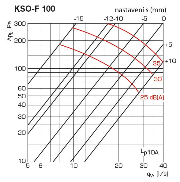 zadní strana ventilu | rozsah použití | nastavení s | akustické parametry | |||