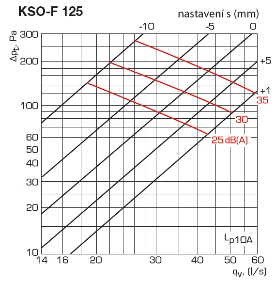 zadní strana ventilu | rozsah použití | nastavení s | akustické parametry | |||