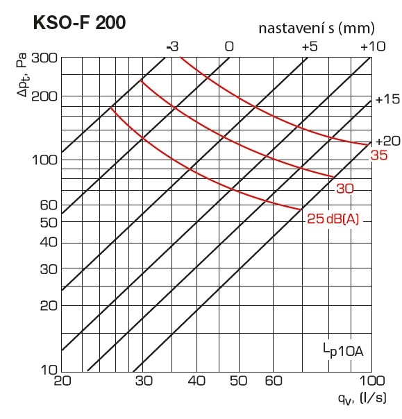 zadní strana ventilu | rozsah použití | nastavení s | akustické parametry | |||