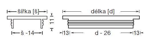 ![]() | Informace • k vestavbě do dveří nebo desek • min. síla desky je 14 mm • otvory v mřížce 40 x 7,5 mm • barvy zlatá, bílá, přírodní elox Příklad objednání: