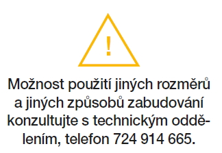 tabulka rozměrových kombinací | možnost použití jiných rozměrů a jiných způsobů zabudování konzultujte s technickým oddělením | požární odolnost podle ČSN EN 13 501-3 |
