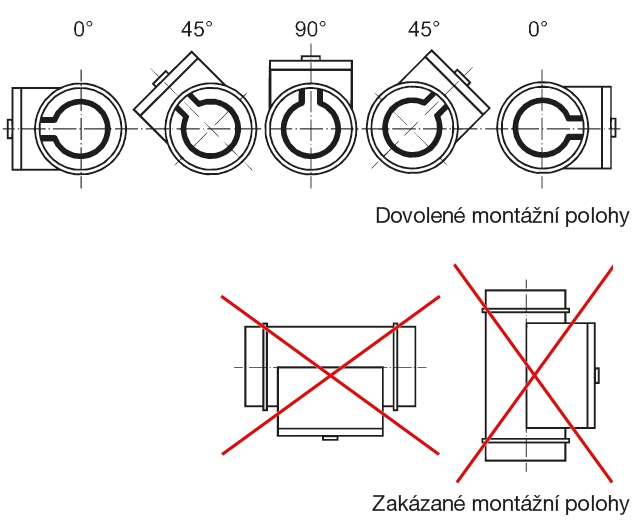 dovolené / zakázané montážní polohy | návrh a konzultace | FX syntetická pryžová izolace proti vodní kondenzaci (na vyžádání) |
