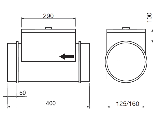 ![]() | Upozornění Před a za ohřívačem je nutné instalovat minimálně 0,5 m ocelového potrubí k zamezení kontaktu s hořlavými díly. Je nutné použití čidla průtoku vzduchu nebo tlakového čidla pro blokování chodu ohřívače při poklesu průtoku, resp. rychlosti proudění pod povolenou mez. | |