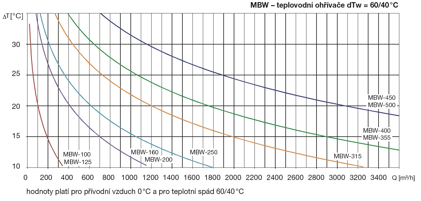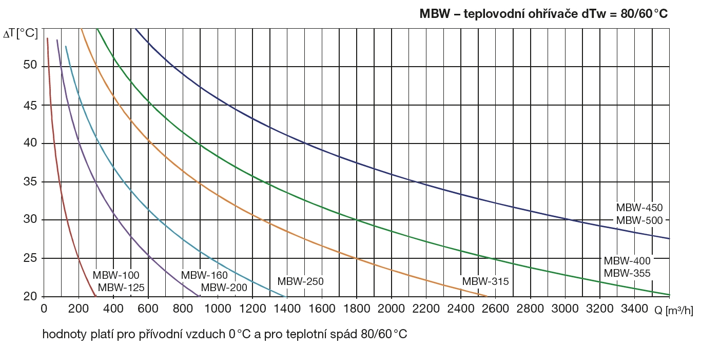 hodnoty platí pro přívodní vzduch 0 ˚C a pro teplotní spády vody 80/60˚C / 60/40 ˚C