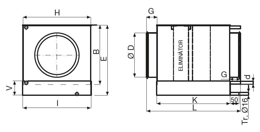 ![]() | Informace • je určen pro kruhové potrubí ve spojení s jednotkami EVKA, RMW, RMR • plášť vodního ohřívače je z galvanizovaného plechu • vana pro odvod kondenzátu je hliníková • lamely jsou hliníkové na měděných trubičkách • připojení je kleštinovým přechodem se závitem, který není v dodávce nebo letováním • maximální pracovní tlak je 25 bar Instalace a provoz • rychlost vzduchu v potrubí nesmí překročit 4 m/s, jinak je nutno po konzultaci s technickým oddělením EDV doplnit další eliminátor kapek • montáž výlučně v horizontální poloze • před chladič musí být instalován filtr vzduchu (ochrana před znečištěním) • chladič doporučujeme zařadit za ohřívač • při montáži je nutno pamatovat na vypouštění a plnění soustavy a zajištění přístupu pro servis • v rámci projekce je nutno chladič navrhnout s ohledem na množství vyvíjeného kondenzátu • odvod kondenzátu s pachovým sifonem je třeba kontrolovat s ohledem na možnost vysychání a zajistit dostatečnou výšku vodního sloupce pro překonání tlakové ztráty sifonu • pro zjištění minimálního bezpečného rozdílu hladin v sifonu lze orientačně postupovat tak, že se vezme celkový tlak ventilátoru Pt v mm vodního sloupce, tato hodnota se zvýší o cca 50 % (takto získaná hodnota představuje praktickou doporučenou hodnotu výšky vodního sloupce v sifonu, aby nemohlo dojít k překonání pachového uzávěru vyfouknutím přetlakem nebo vysáním podtlakem ventilátoru) • procházející vzduch nesmí obsahovat pevné, vláknité, lepivé a agresivní příměsi. Také musí být bez chemických látek, které způsobují korozi použitých materiálů tj. narušují hliník, měď a zinek • na základě konzultace s technickým oddělením je možno nabídnout vhodný zdroj chladu Upozornění