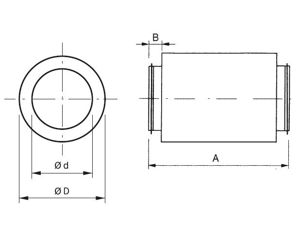 Homepage > Úplný sortiment > Produkty > Příslušenství – potrubní elementy > Tlumiče hluku > Tlumiče hluku MTS pro kruhové potrubí