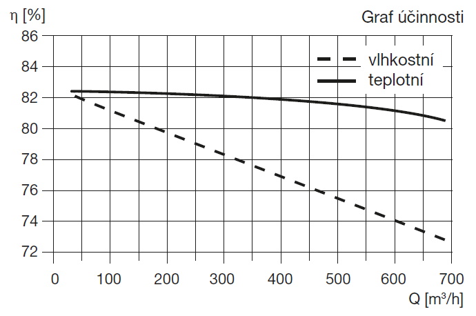 ![]() | Regenerace Rotační regenerační výměník s přenosem tepla a vlhkosti má účinnost až 84 % při nominálním průtoku vzduchu. Těsnění oběžného kola v dělící rovině zabezpečuje vysokou těsnost kola až 98 %. Výměník je přístupný po otevření čelního víka. Díky vysoké účinnosti rotačního regeneračního výměníku nedochází k jeho zamrzání. Pohon rotoru je realizován indukčním motorem s čelní převodovkou o výkonu 6 W a napájením 230 V/50 Hz. | |