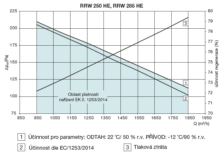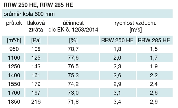 ![]() | Informace Rotační výměníky RRW HE jsou určeny pro stavebnicové systémy s ventilátory IRB, IRT pro čtyřhranné potrubní systémy (400×200 až 1000×500 mm), respektive s redukcí pro ventilátory CVB, CVT, CVAB, CAB do kruhového potrubí (průměr 200 až 500 mm). Na speciální objednávku lze vyrobit rotační regenerační výměníky i pro ventilátory ILHT, případně CVTT. Dodávané rotační regenerační výměníky vzduch – vzduch lze použít v centrálních i decentrálních systémech větrání v průmyslové i komfortní vzduchotechnice. Průtok vzduchu je v rozsahu od 600 do 5350 m3/hod. Tento rozsah je pokryt řadou 4 typů. Pro standardní podmínky doporučujeme rychlost proudění v rozsahu od 2 do 4 m/s. Rotační výměník RRW HE umožňuje přenos tepla (u speciálního provedení také přenos entalpie, tj. tepla a vlhkosti) z odváděného vzduchu do vzduchu přiváděného. K přenosu tepla dochází pomocí akumulační hmoty rotoru, kde přibližně jedna polovina je v proudu odváděného vzduchu a druhou polovinou proudí přívodní venkovní vzduch. Za určitých podmínek může docházet k přenosu chladu. Otáčením rotoru se teplosměnná plocha výměníku nachází střídavě v proudu přiváděného a odváděného vzduchu a tím dochází k přenosu tepla nebo chladu (případně entalpie). Tyto výměníky patří mezi zařízení s vysokou účinností přenosu tepla (entalpie). Proto je jejich použití vhodné ke všem vzduchotechnickým systémům s vyššími průtoky vzduchu. Jsou velmi vhodné jako součást sestavných jednotek pro přívod a odvod větracího vzduchu. Dochází pak ke snížení provozních nákladů a tím ke zkrácení návratnosti investic. • průměr kola 500, 600, 700, 1000 mm • rychlost vzduchu 2 až 4 m/s • průtok 600–5350 m3/h • příkon motoru 40 W • otáčky cca 12 ot./min. • účinnost 73 až 80 % | |
