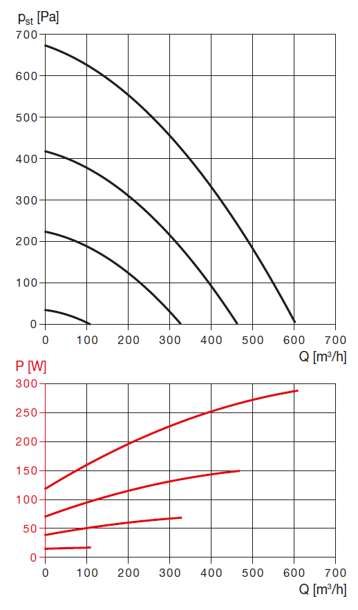 * akustický tlak měřen ve vzdálenosti 1,5 m při 140 / 250 / 400 m3/h a 100 / 135 / 150 Pa