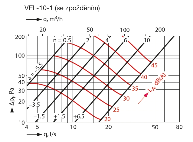 ![]() | Informace Určeny pro odvod (přívod) vzduchu, s nastavitelným středovým elementem pro regulaci průtoku. Ventily jsou vyrobeny z polypropylenu, barva bílá, těsnění do rámečku pružnou páskou. Montážní rámečky jsou z pozinkovaného plechu.' • elektrické ovládání 24 V (4 W) • krytí IP61 • mechanické s doběhem pro DCV systémy (větrání řízené skutečnou potřebou) • vhodné pro rekonstrukce panelových domů bez nutnosti zásahu do VZT rozvodů • nastavení min. průtoku otočením disku • nízké hodnoty hluku a přeslechu • teplota okolí do 100 ˚C Instalace Ventily se zasunují do montážního rámečku, který není součástí dodávky. Montážní rámeček slouží k upevnění ventilu do stropní konstrukce, do zdi nebo do kruhového potrubí. Otáčením středového disku lze nastavit minimální trvalý průtok zavřeného ventilu. U mechanického provedení je pro zajištění doběhového času nutné minimální otevření odpovídající cca 20 l/s (viz graf na další straně). Montážní rámečky VLZ-03-10, VLZ-03-12 – bez gumového těsnění, pro ventily s bajonetem VLZ-06-10, VLZ-06-12 – bez gumového těsnění, pro ventily s plochými pružinami Použití Elektricky ovládané talířové ventily VEL jsou vhodné pro systémy DCV (větrací systémy řízené skutečnou potřebou). Systémy fungují na principu regulace na stálý tlak ve stoupacím potrubí. K napájení se použije transformátor CTE 24/5 W. Funkce Při rozsvícení v koupelně nebo WC dojde k otevření talířového ventilu a tím k poklesu tlaku v potrubí. Diferenciální tlakový senzor ventilátorů CTB a CRxB Ecowatt Plus s řídicí elektronikou zvýší otáčky tak, aby došlo k doregulování na předchozí hodnotu tlaku. | |