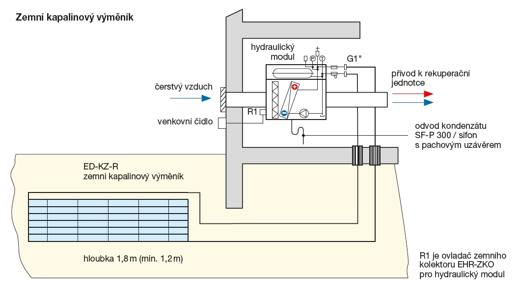 Zemní kapalinový výměník využívá relativně konstantní teplotu zeminy cca 8 až 12 ºC v hloubce 1,8 m (min 1,2 m) v zemi. S narůstající hloubkou se teplota v zemi zvyšuje a blíží se konstantní hodnotě v období celého roku.