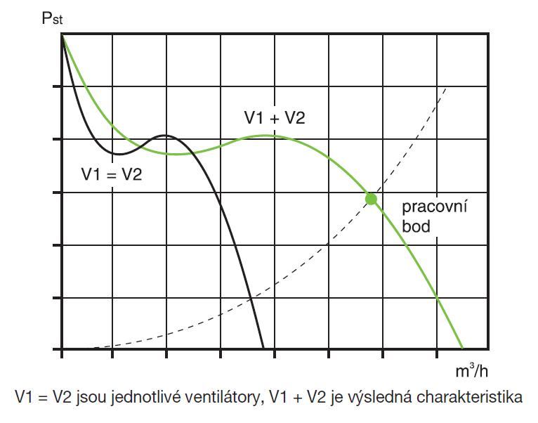 Podrobnosti k návrhu paraleního chodu ventilátorů lze nalézt ve skriptech (ČVUT FS), odborné monografii Ventilátory / Ing. J. Čermák CSc. 1974, případně v jiných odborných publikacích.
