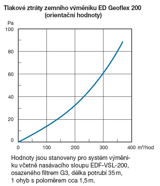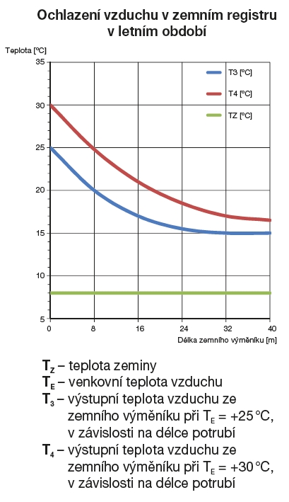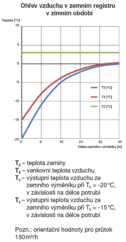 • uvedené uložení a návrh délky splňují důležitou zásadu, aby teplota vzduchu z výměníku v zimním období neklesla pod 0 ºC. Tím je zaručeno, že v rekuperačním výměníku větrací jednotky nedojde k namrzání kondenzátu