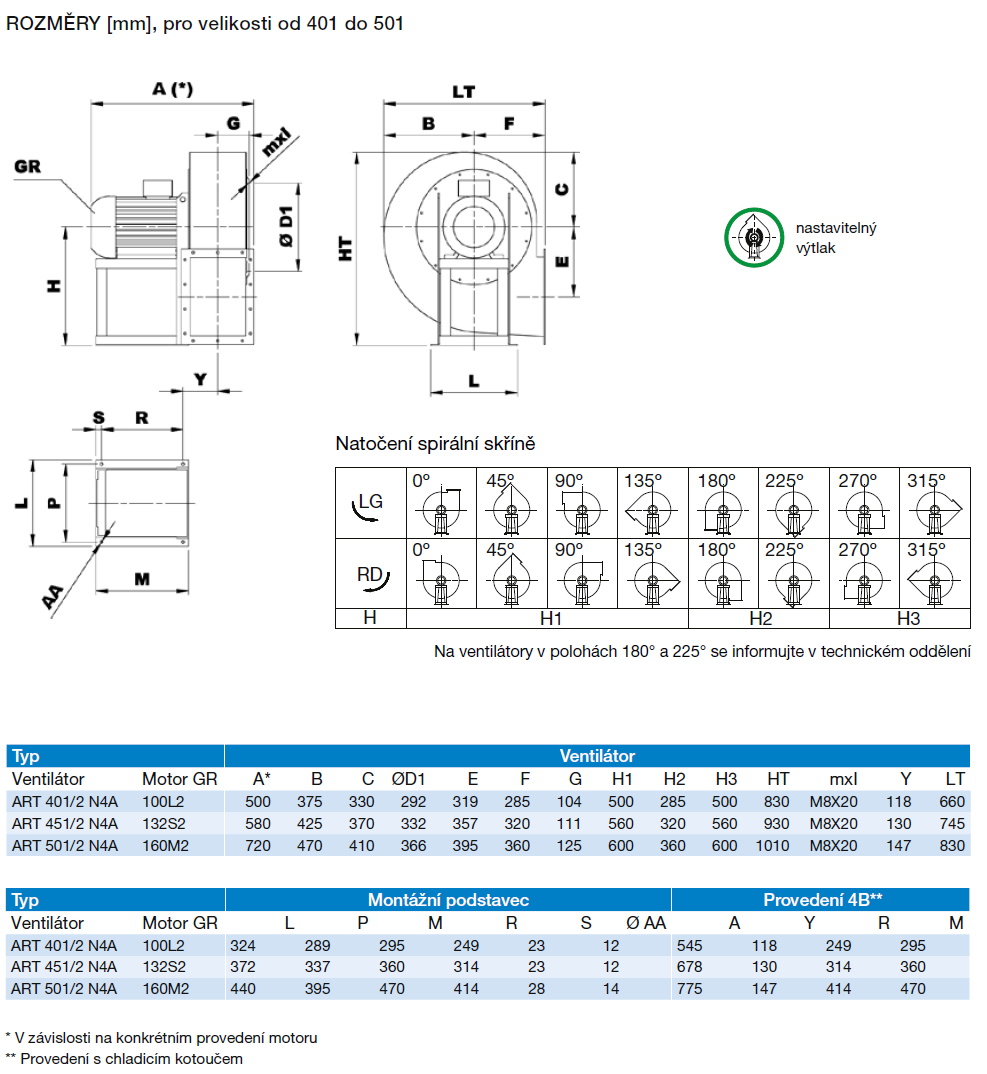 oběžné kolo s dozadu zahnutými lopatkami | tabulka použití | ERP data | izolátory chvění | |||