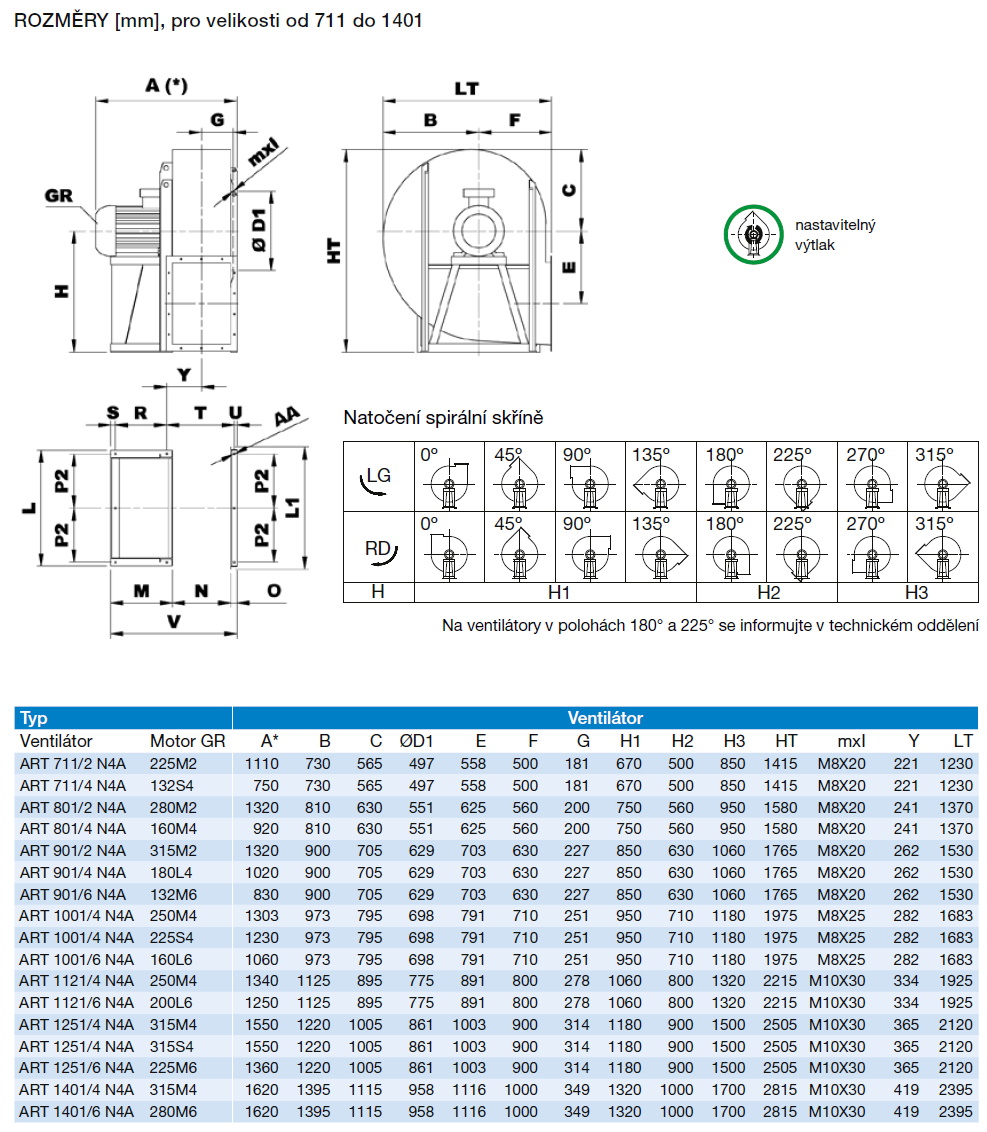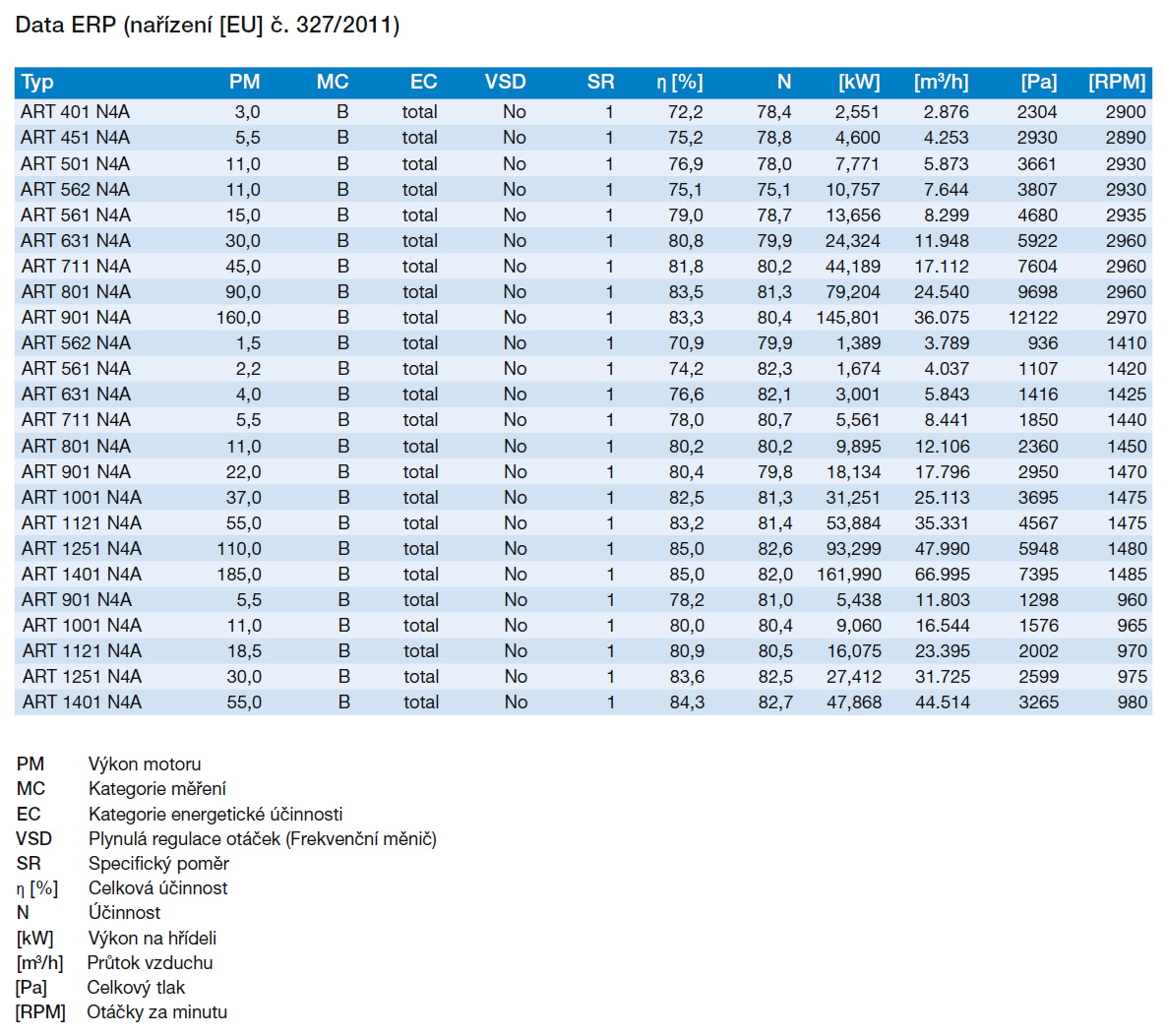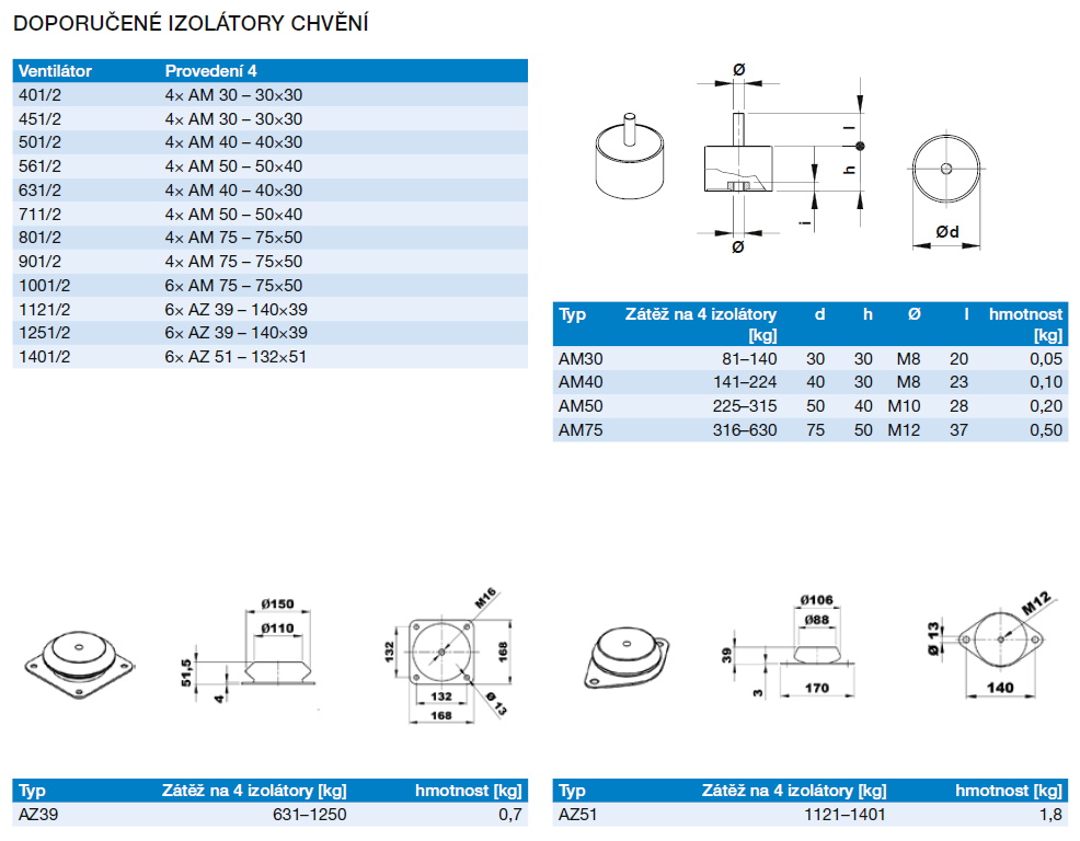 oběžné kolo s dozadu zahnutými lopatkami | tabulka použití | ERP data | izolátory chvění | |||