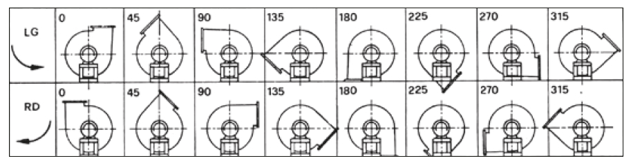 možnosti natočení skříně (ventilátory zobrazeny z pohledu na motor) | konzultace a návrh |