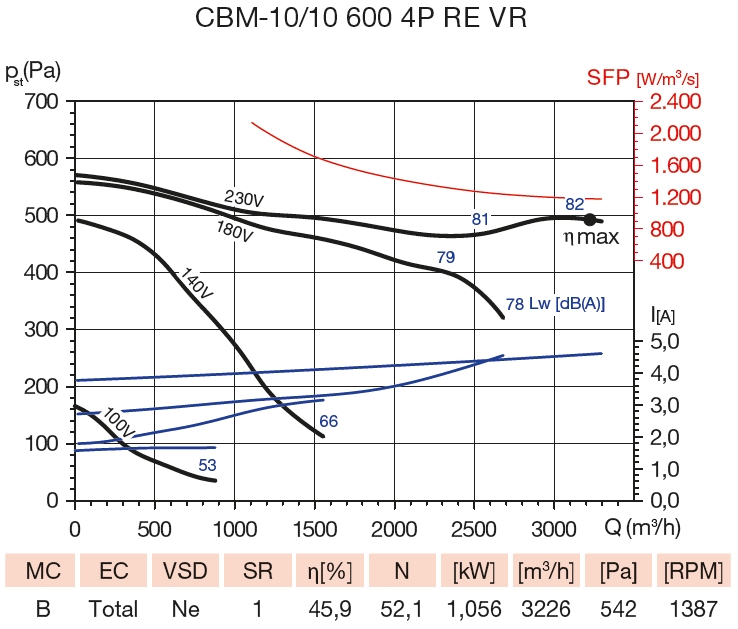 | ekvivalentní rozměr [mm] | příkon [W] | napětí [V] | proud [A] | průtok [m3/h] | max. teplota [°C] | akust. tlak [dB(A)] | hmotnost [kg] | regulátor |