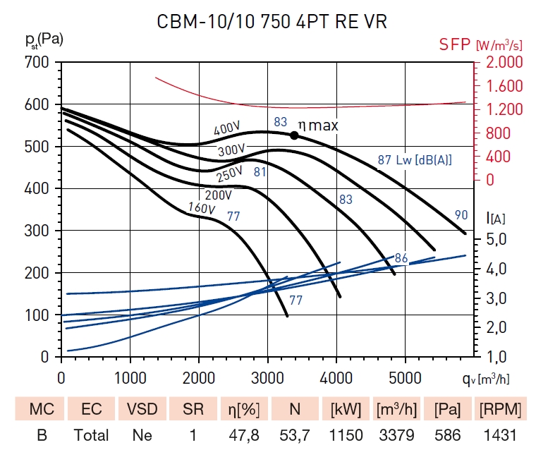 | ekvivalentní rozměr [mm] | příkon [W] | napětí [V] | proud [A] | průtok [m3/h] | max. teplota [°C] | akust. tlak [dB(A)] | hmotnost [kg] | regulátor |
