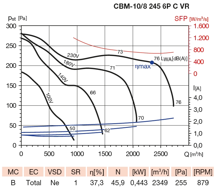 CBM-10/8 245 6P C VR IP44 centrifugal fanSpeciální radiální ventilátory