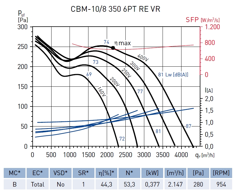 | ekvivalentní rozměr [mm] | příkon [W] | napětí [V] | proud [A] | průtok [m3/h] | max. teplota [°C] | akust. tlak [dB(A)] | hmotnost [kg] | regulátor |