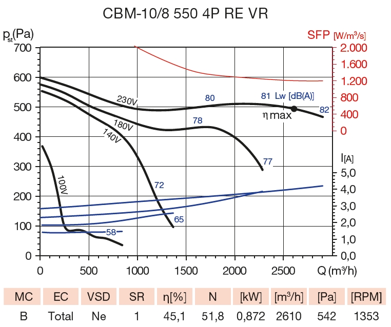 | ekvivalentní rozměr [mm] | příkon [W] | napětí [V] | proud [A] | průtok [m3/h] | max. teplota [°C] | akust. tlak [dB(A)] | hmotnost [kg] | regulátor |